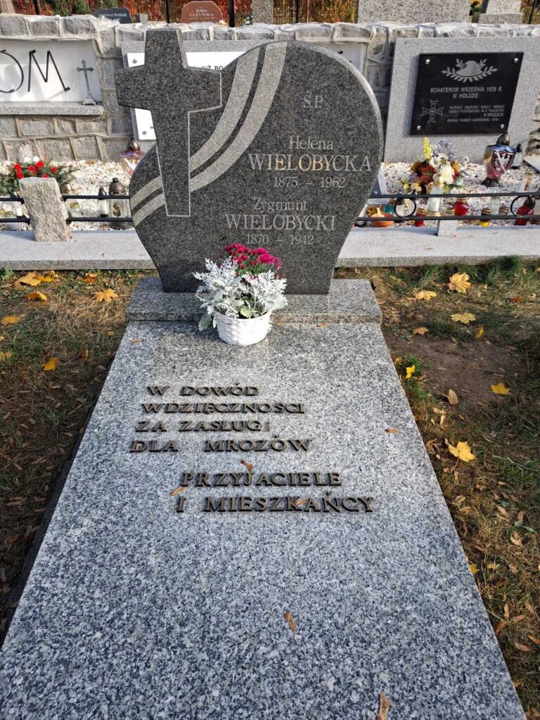 Na cmentarzu w Mrozach, tuż przy mogiłach żołnierskich, znajduje się skromny grób Heleny Wielobyckiej – niewątpliwie najważniejszej damy mroziańskiej kultury, patronki Gminnego Centrum Kultury w Mrozach. Jej życie, to gotowy scenariusz na książkę lub film z mocnym przesłaniem zmuszającym do refleksji. Pani Helena, gdziekolwiek się nie pojawiła rozsiewała radość, sztukę i piękno. Pozostawiła po sobie trwałe ślady kultury nie tylko w Mrozach. Zmieniała ludzi, rozwijając ich talenty i obszary zainteresowań. Na koniec życia została jednak sama – sama ze swoją starością, kalectwem i pragnieniem bycia dla innych. Zachęcam do zapoznania się z historią tej niezwykłej kobiety.